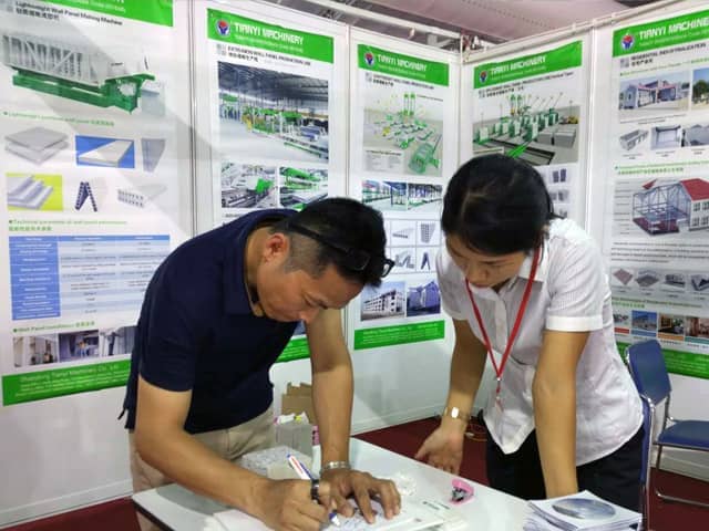 越南是亞洲經(jīng)濟(jì)發(fā)展速度的國家之一。近年來,越南正加大對(duì)基礎(chǔ)設(shè)施建設(shè)和主要城市居民住宅的改造力度,綠色建筑建材裝備缺口巨大,為適應(yīng)市場需求,天意機(jī)械攜綠色建材設(shè)備參展了此次展會(huì)。展會(huì)期間,外貿(mào)銷售部李經(jīng)理,認(rèn)真對(duì)待每位來訪的客戶,詳細(xì)向其介紹天意機(jī)械專利產(chǎn)品輕質(zhì)墻板生產(chǎn)線,復(fù)合墻板生產(chǎn)線,保溫裝飾一體化板生產(chǎn)線等產(chǎn)品的優(yōu)勢,以及設(shè)備在東南亞地區(qū)建筑建材市場的影響,展會(huì)現(xiàn)場就有多數(shù)客戶,初步簽訂了輕質(zhì)墻板生產(chǎn)線、復(fù)合墻板生產(chǎn)線加工生產(chǎn)訂單。
