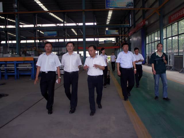 市領(lǐng)導(dǎo)先后參觀了我公司的6A辦公大樓、省級研究中心、體驗館、樣板別墅、集成房屋、設(shè)備生產(chǎn)車間以及鋁型材加工基地。每到一處,市領(lǐng)導(dǎo)都仔細詢問了技術(shù)與生產(chǎn)等相關(guān)問題。